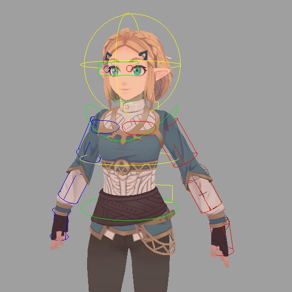 As Zelda’s face expresses, this kind of setup is undesirable. The head and arms are locked to the torso and she moves like a wooden doll. In real life you usually don’t naturally move like this. Try moving your chest side to side. Do you do it like that, or do you do it like this?